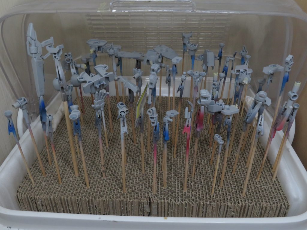 取り敢えず乾燥機に入る分だけ塗装していきます。