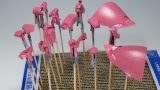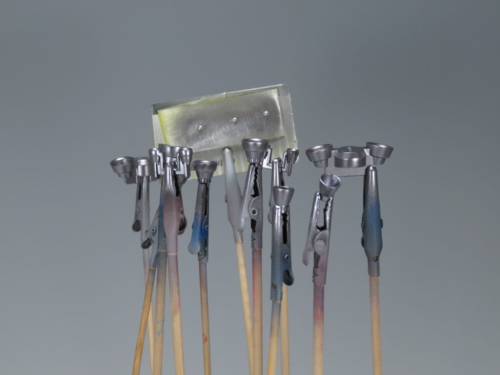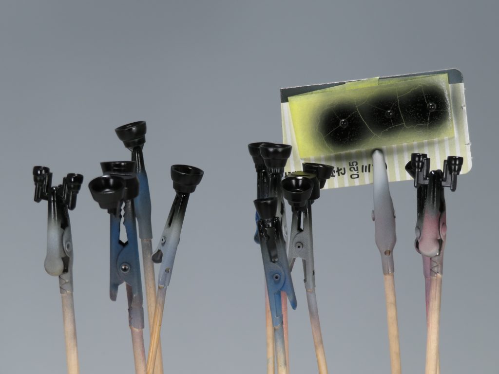 持ち手の付いたクリップにパーツを挟んでいきます。